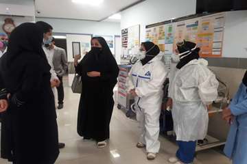 در این بازدید نظارتی که با حضور دکتر فلاح - ریاست بیمارستان و مدیر پرستاری بیمارستان فوق صورت پذیرفت اقدامات انجام شده در راستای برنامه ریزی، اجرای فرایندهای بالینی و مدیریتی به ویژه در خصوص ارایه خدمات به بیماران کووید و همچنین چینش نیرو , لیست تجهیزات مصرفی و سرمایه ای مورد نیاز وهمچنین بررسی کمبود نیروی انسانی در رده های مختلف تخصصی و عمومی مورد بررسی قرار گرفت .