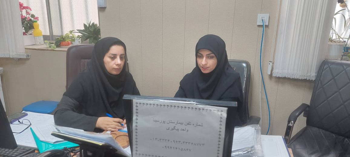 بازدید کارشناس مدیریت امور پرستاری دانشگاه از مرکز آموزشی درمانی پورسینا و بررسی شاخص های پرستاری پیگیری و آموزش به بیمار