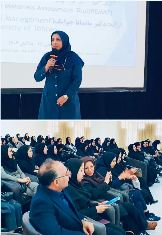 دکتر ماندانا جوانک، از کارشناسان مدیریت امور پرستاری دانشگاه، با دعوت به عنوان مدرس در «دوره کشوری توانمندسازی سوپروایزرهای آموزش سلامت» که در مشهد برگزار شد، شرکت کرد.وی در این دوره تخصصی، سرفصل آموزشی «ابزار ارزیابی آموزش به بیمار» با نام اختصاری PEMAT را به حاضران ارائه نمود. این دوره با هدف ارتقای سطح کیفی آموزشهای ارائه شده به بیماران و توانمندسازی سوپروایزرین آموزش سلامت برگزار گردید.
